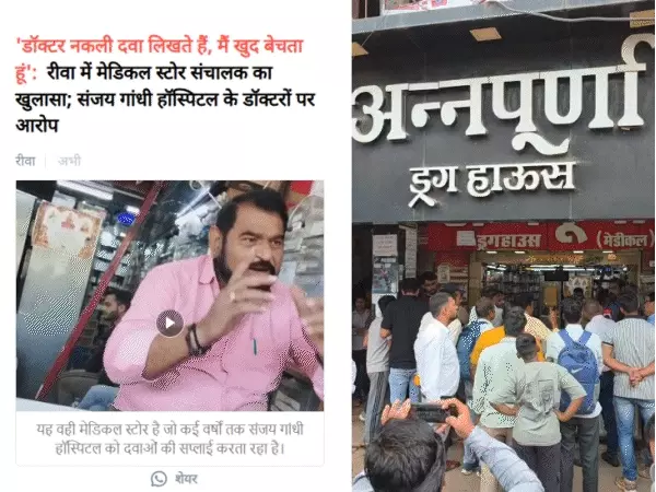 स्टिंग: डॉक्टर नकली दवा लिखते हैं, मैं खुद बेचता हूं — मेडिकल स्टोर संचालक का खुलासा, रीवा में स्टोर पर छापा